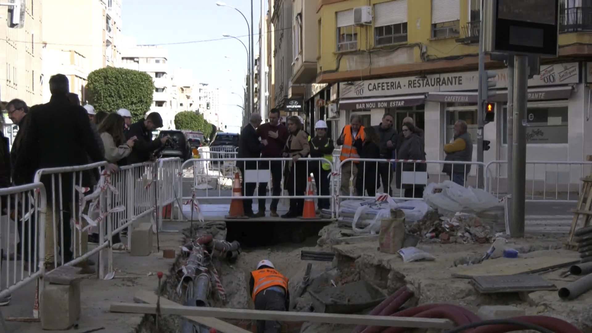 Vicent Mompó visita les obres del clavegueram del marge esquerre del Camí Nou, finançades amb 1,7 milions pel Pla Obert de la Diputació. L’alcaldessa destaca que gràcies al suport estatal també es podrà actuar al marge dret i millorar la