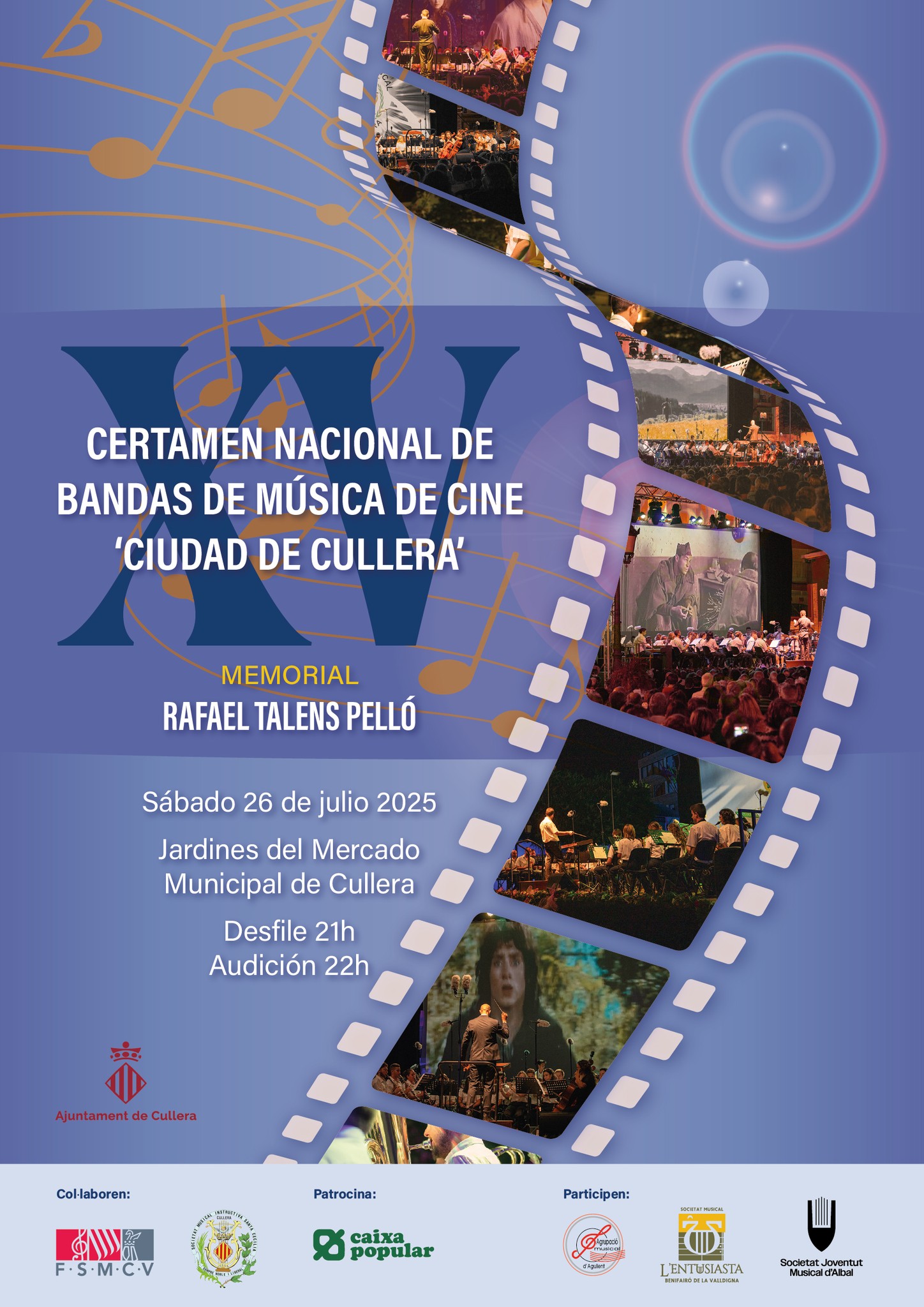 Aquest dissabte 26 de juliol, Cullera acull una nova edició del Certamen Nacional de Bandes de Música de Cinema, que enguany celebra el seu 15é aniversari, consolidat com una de les cites culturals més esperades de l’estiu.