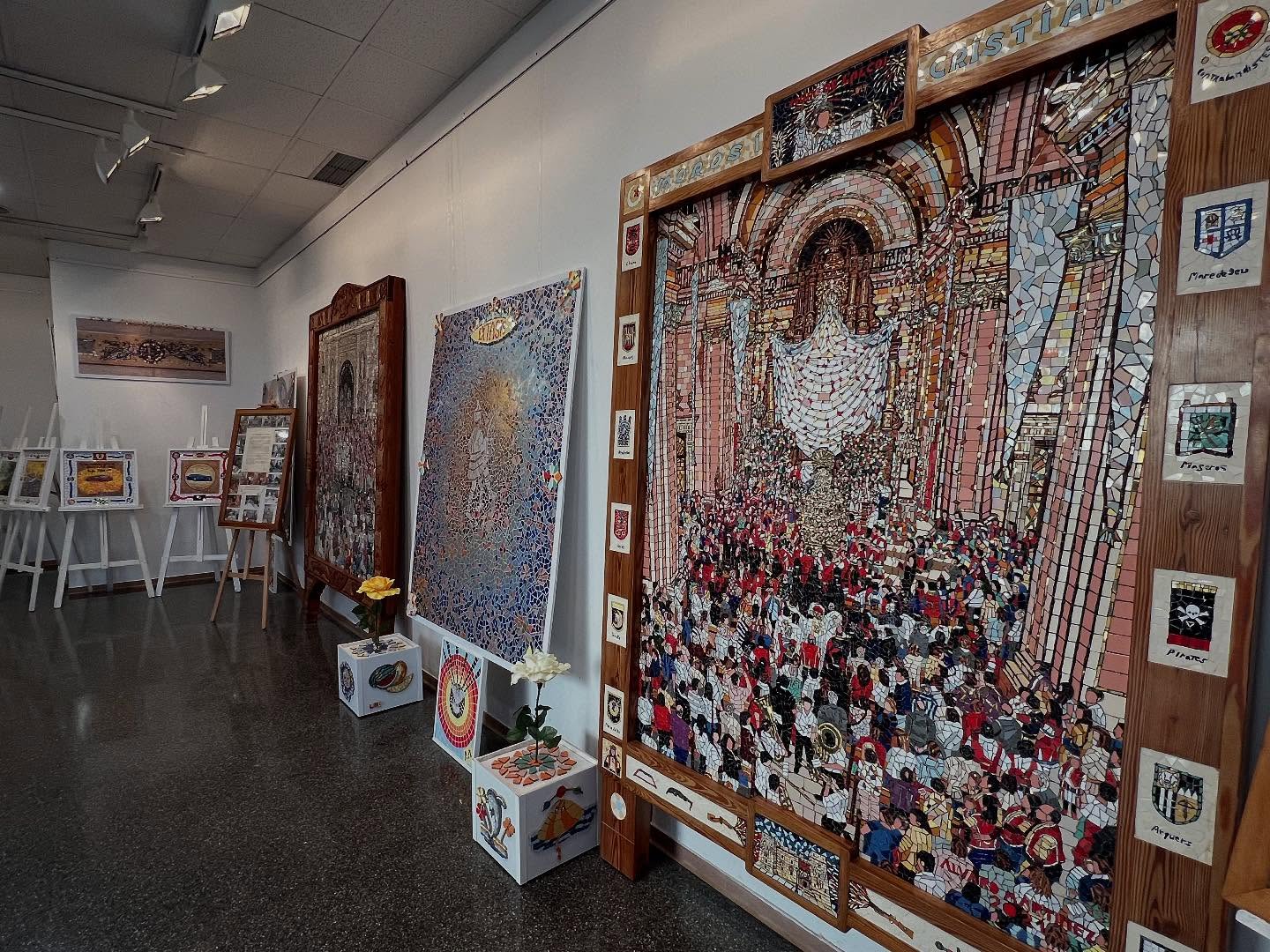 La mostra compta amb més de 20 obres que combinen peces de pedra de diferents colors, formes i grandàries, recreant escenes de celebracions com “La Processó del Foc en honor a la Divina Aurora” de Benifaió o la “Festa de la Mare de Déu de la Salut” d’Algemesí.