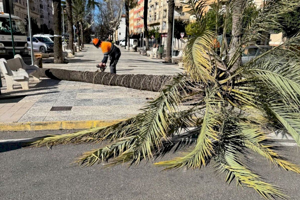 El vent també ha causat incidències importants en altres localitats. A Albaida, s’ha produït la caiguda de palmeres, mentre que a Monòver s’han registrat arbres arrancats. A Simat de la Valldigna, un arbre de grans dimensions ha sigut tombat completament per la força del vent.