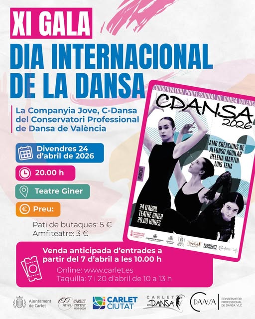 Carlet commemorarà el Dia Internacional de la Dansa amb la celebració de la XI Gala, protagonitzada per la Companyia Jove C-Dansa del Conservatori Professional de Dansa de València, que tornarà al municipi amb una proposta escènica plena de creativitat i expressió.