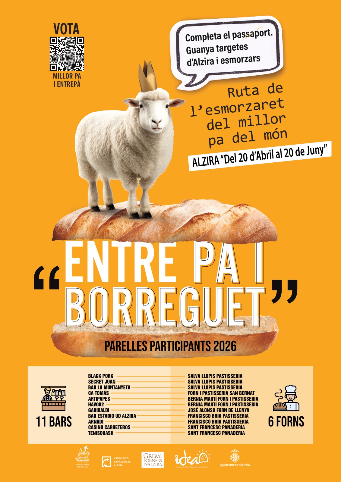 La iniciativa compta amb la participació de 11 bars i 6 forns locals, que treballaran conjuntament per a oferir el “borreguet”, l’entrepà protagonista de la campanya, elaborat amb pa tradicional subministrat pels forns del municipi.