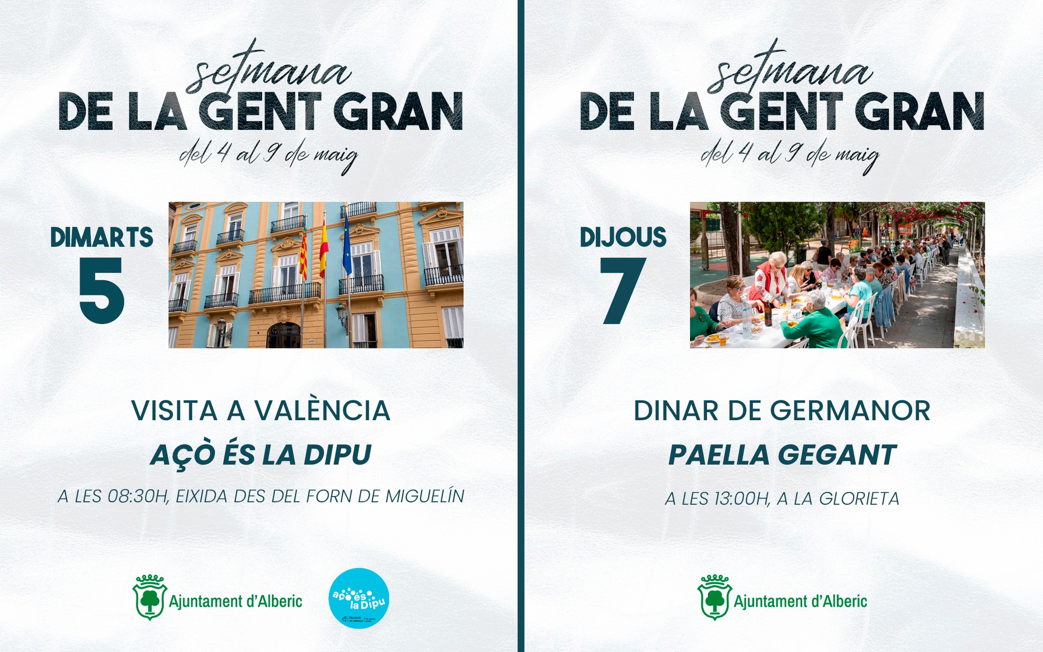 Del 4 al 9 de maig, Alberic celebra una nova edició de la Setmana de la Gent Gran, amb diferents actes i activitats dirigides a les persones majors del municipi.